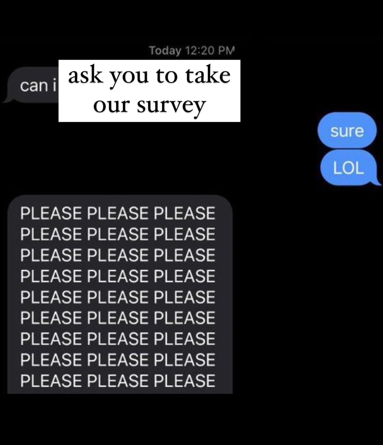That's right — if by some incredible miracle you missed the audience survey, NOW IS YOUR CHANCE TO BE HEARD! Prithee, tell us what you like about the show, what you don't like, and perhaps a secret third option! The survey will be up until the end of the year at which point it will disappear forever and you will NEVER see it again so yet again I demand that you involve yourself in the great theater of public opinion AT ONCE!